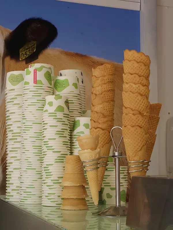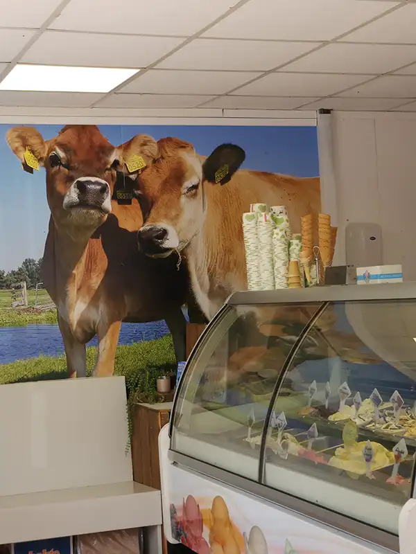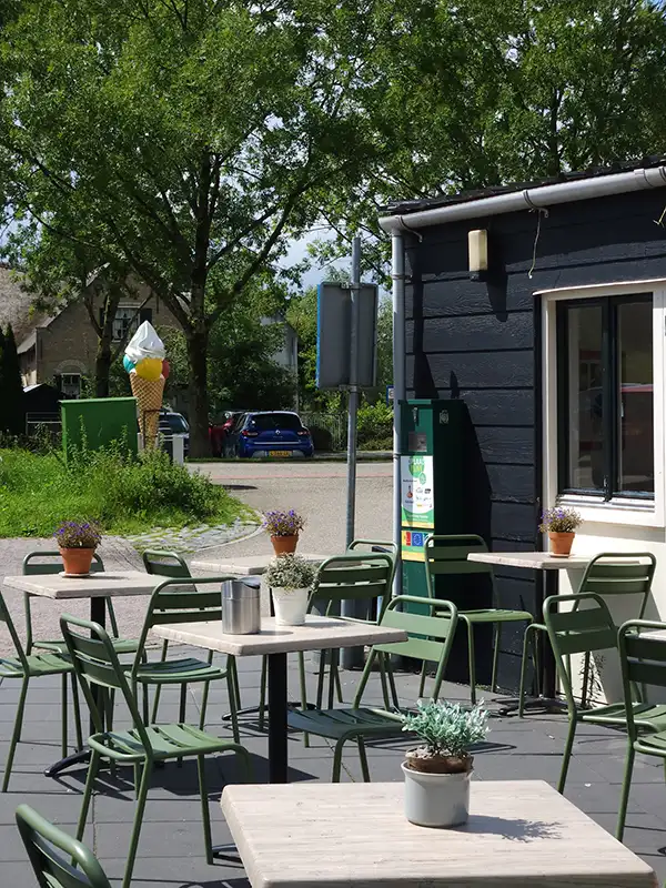 Geniet op ons terras van een ijsje, kopje koffie of neem een literbak ijs mee om thuis te genieten.