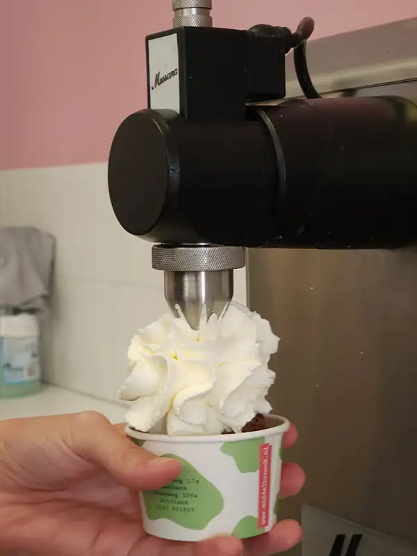 In de ijssalon verkopen wij ons ambachtelijk bereid schepijs. Naast onze vaste smaken in de vitrine hebben wij standaard een aantal smaken sorbet ijs (melkvrij) en een aantal wisselende smaken.