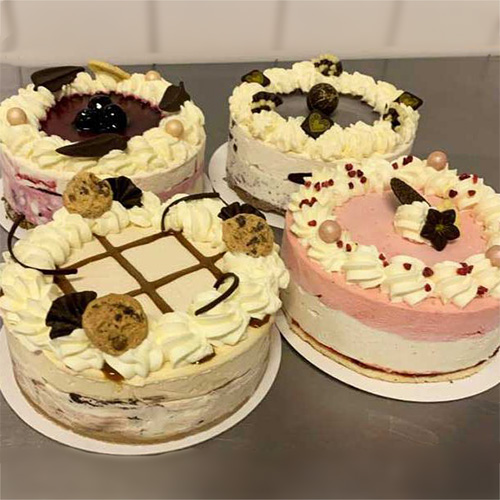 Geniet van onze smaakvolle ambachtelijke ijstaarten. Ze zijn te bestellen in twee formaten – voor 6/8 personen en voor 10 personen.