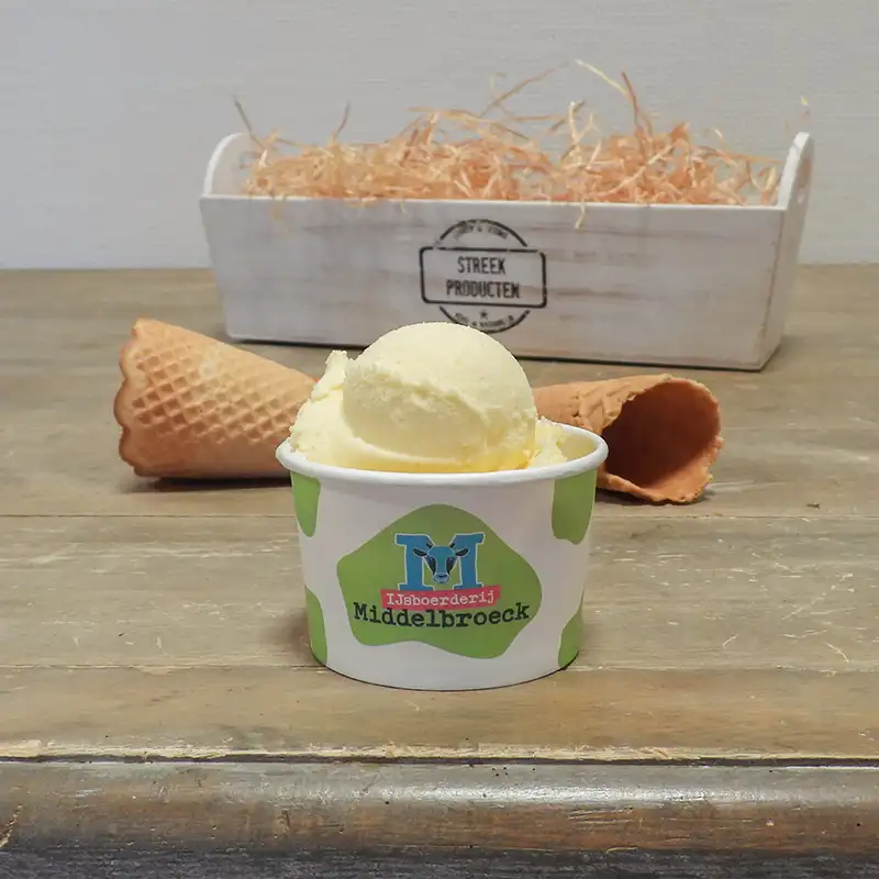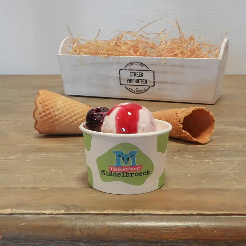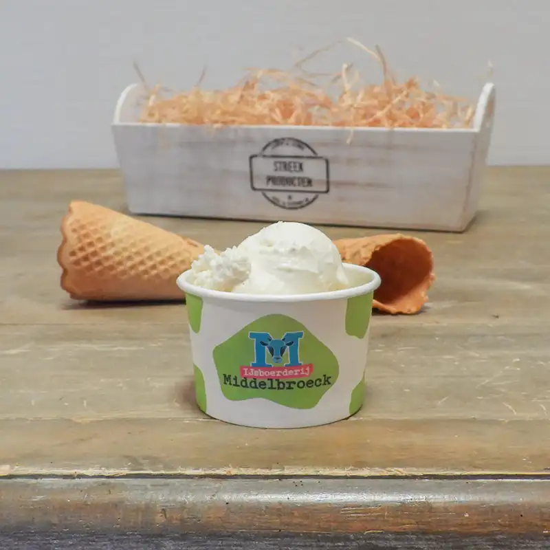 Ons yoghurt ijs wordt gemaakt van volle boeren yoghurt.